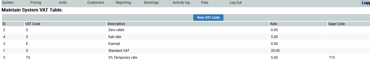 These VAT codes will appear in a drop down for you to set when adding Extras or Hire Elements and you need to know what VAT rate is applied to them.