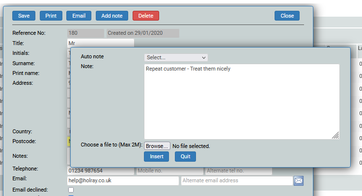 To add a note, click the Add Note button, and a pop-up will appear, as below:-
