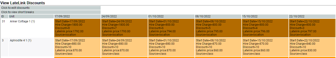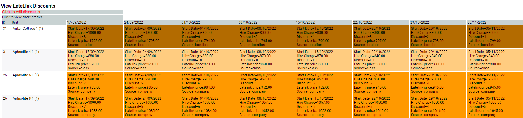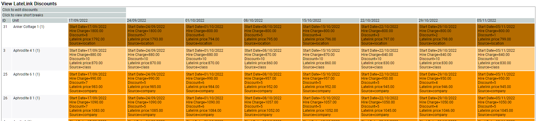 This gives a table showing all units and a colour coded block with the discount showing at which level the discount is set.