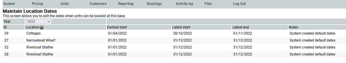 This is where you set when your season starts and finishes, for each of your locations. By default, the system will create the dates to be 1st January to the 31st december. You need to tell it otherwise.