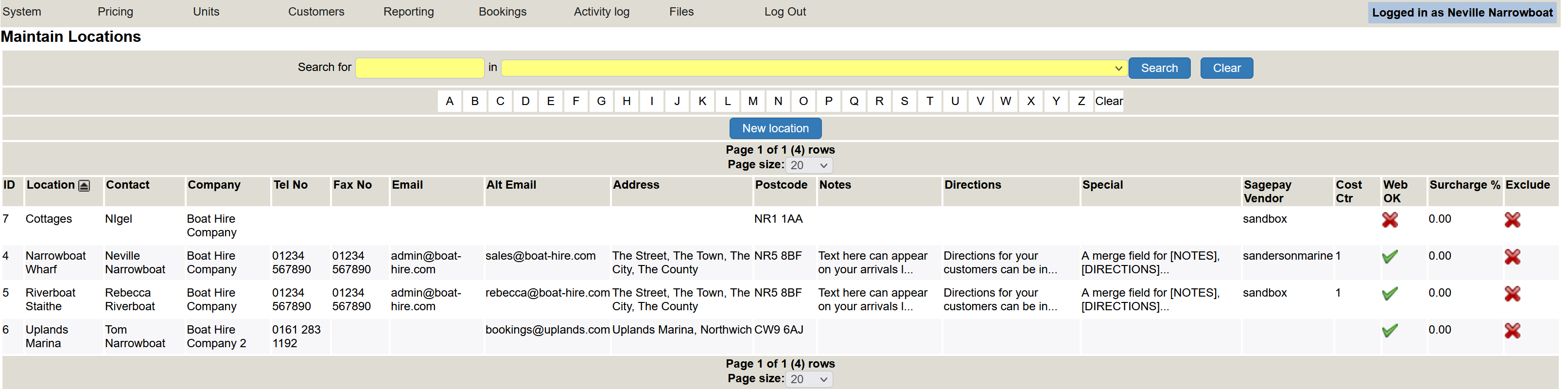 You may operate your business from more than one location. This is where you add your locations. A location can be an actual place, or it can be used to differentiate between your hire boats, cottages, day boats and so on.