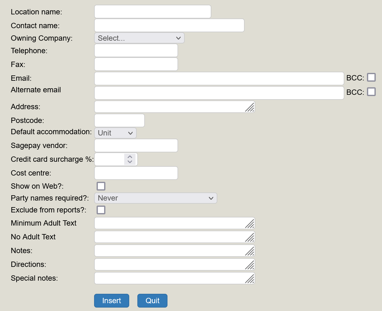 Click Insert if adding a new location or Save to save an existing location. You can amend it at any time.