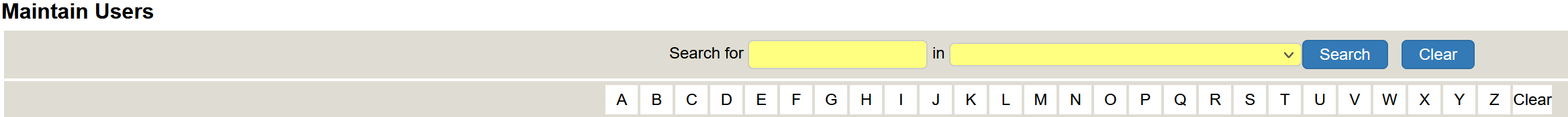 You can search for a user quickly using the search options at the top of the page (in yellow).You can also search using the alphabet buttons. See below:-