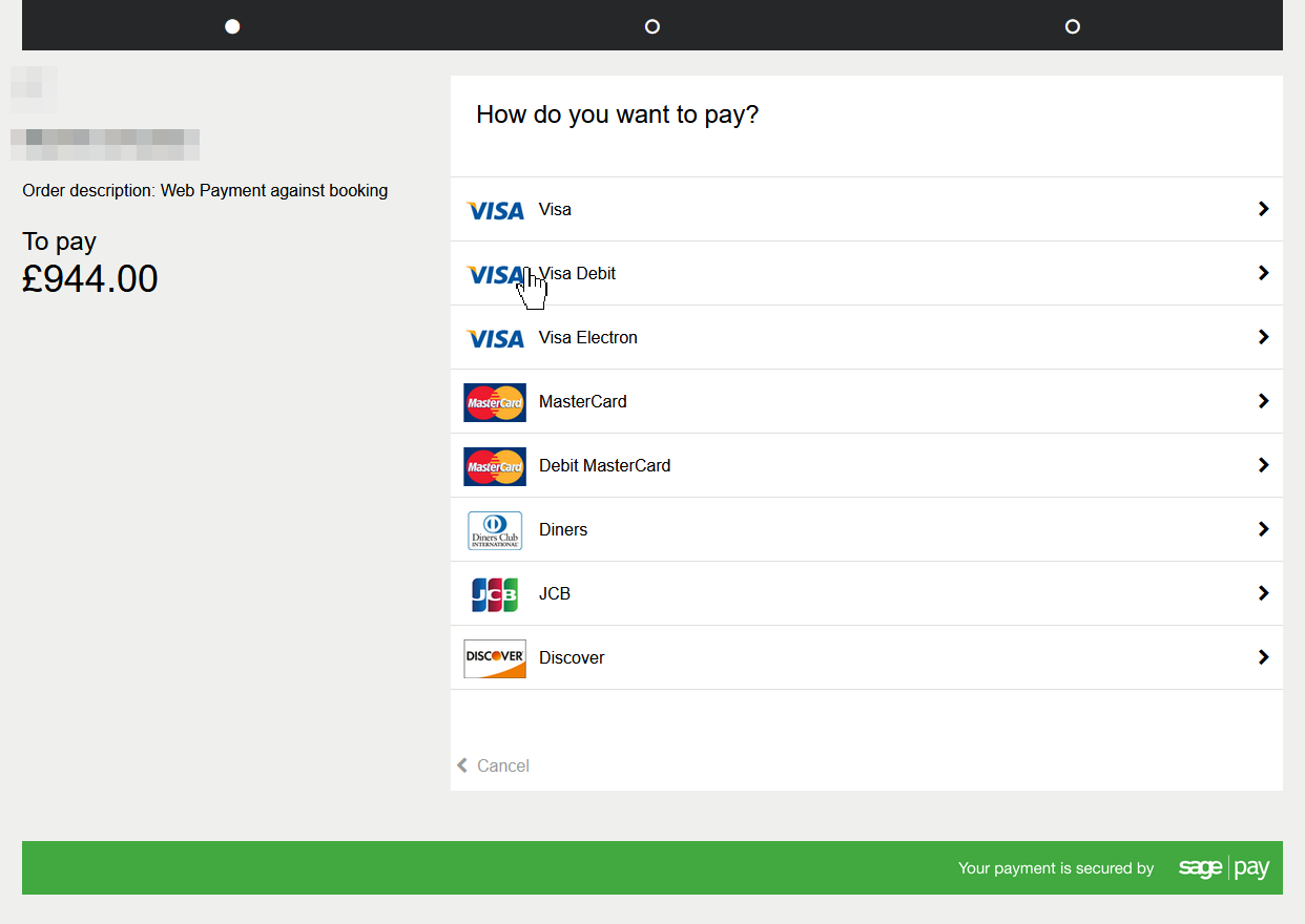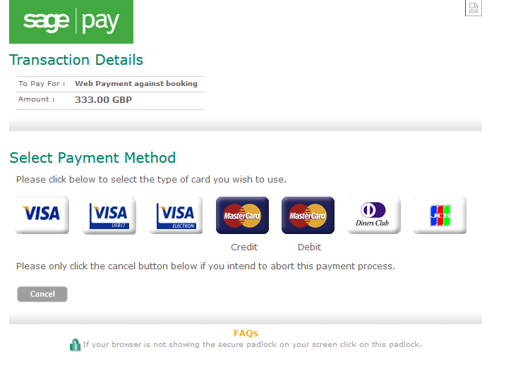 To identify if this is the issue, it is necessary to check out as far as the Opayo card selection pages and if they look as below:-