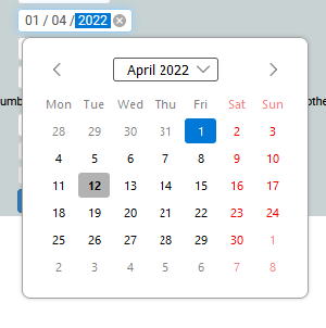Date field, these are being rolled out to replace the original “holray” style dates. Clicking on a date field will open a calendar,as below:-